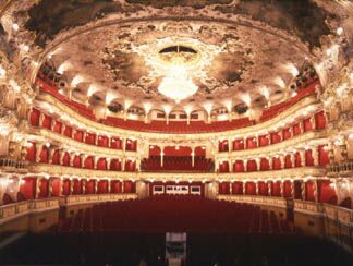 teatrets gamle scene åbnede i 1883 med operaen Libuse, af ”national-komponisten” Smetana. Libuse var den mytiske prinsesse, der siges at have spået Prags grundlæggelse fra Vysehrad-borgen. Teatrets udsmykninger er helt overdådige. Mange af tidens vigtigste billedkunstnere tog del, som det ses til venstre. En af de bedste anbefalinger i April er Rusalka, en opera af Dvorak, landets anden ”national-komponist” fra perioden i slutningen af 1800-tallet, kaldet “den nationale vækkelse”. Moldau og Den nye verden er blandt Dvoraks bedst kendte stykker. Rusalka spiller f.eks. d.13.april på Nationalteatret. Janacek er den tredie, meget berømte, tjekkiske komponist.